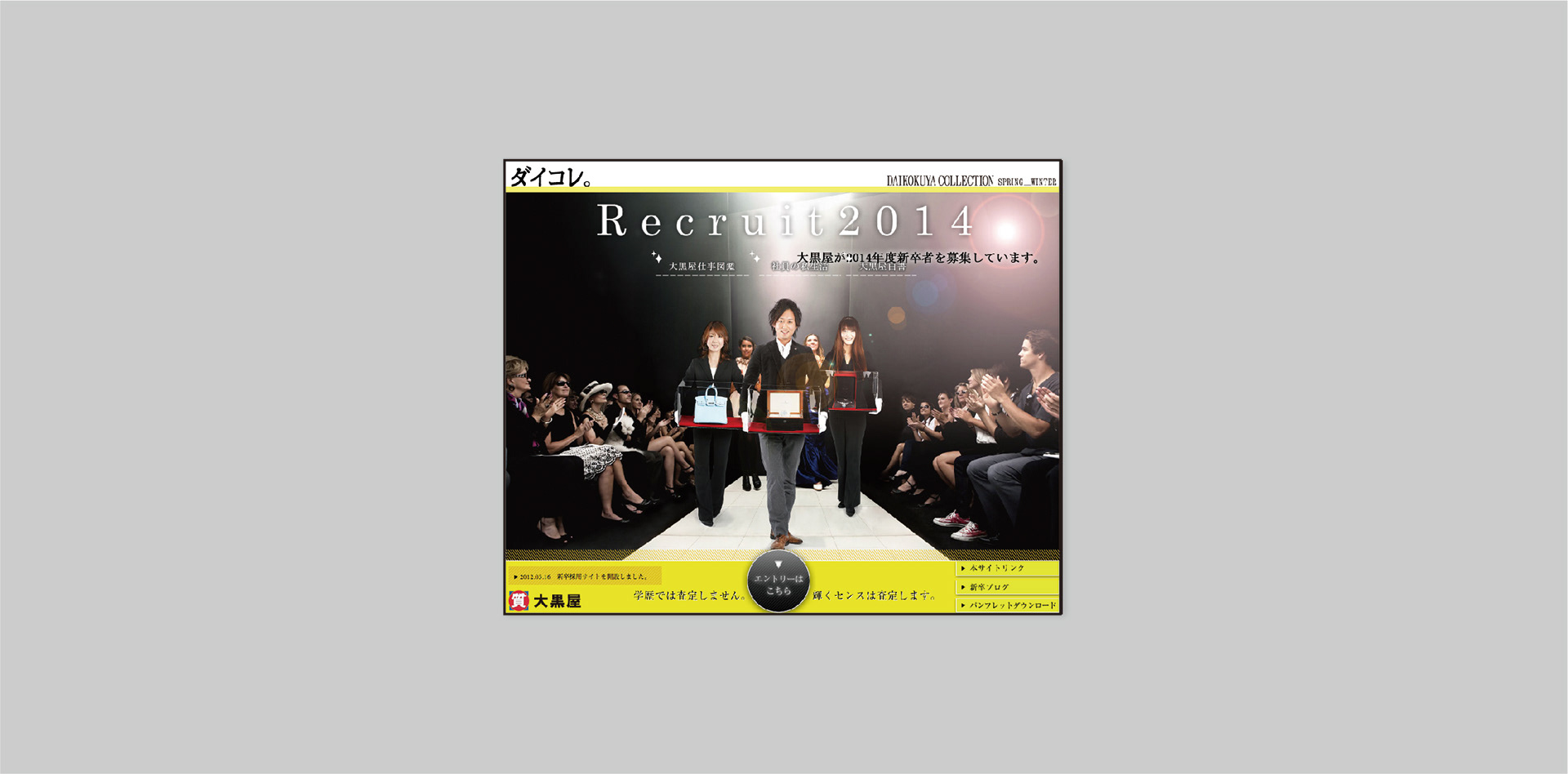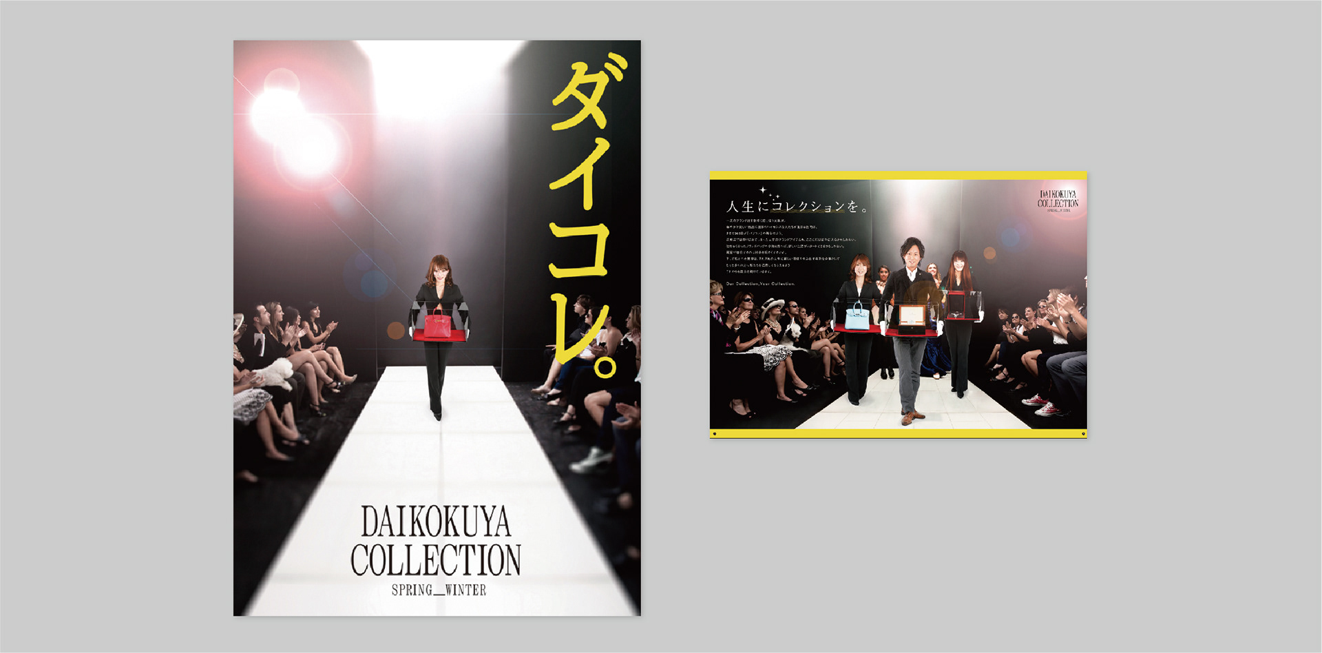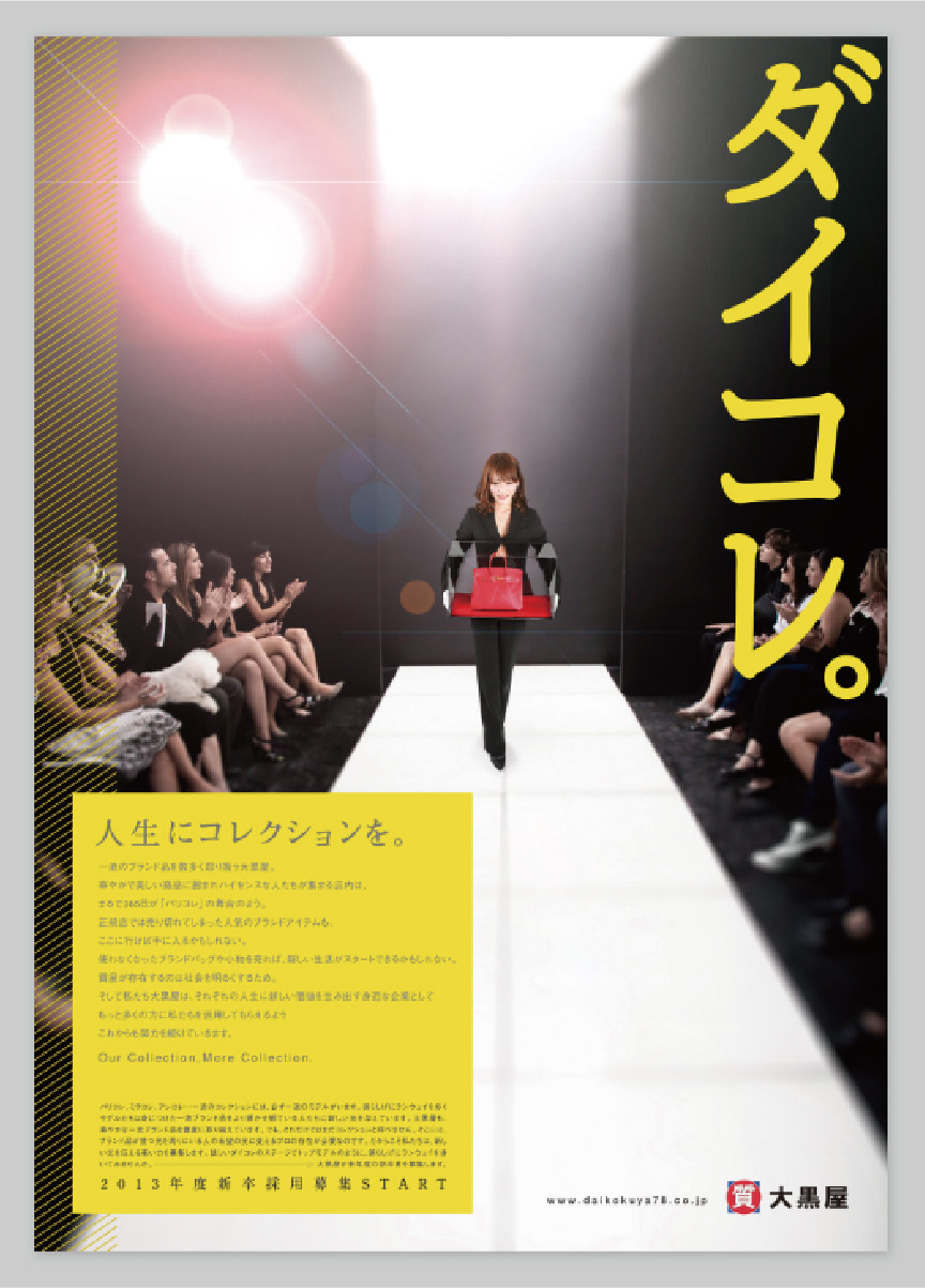 一流のブランド商品を取り扱う大黒屋を、パリコレに見立ててパロディで表現